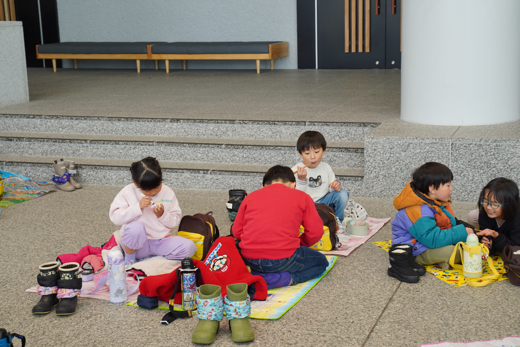 保護中: 2月4日【5歳児】発表会リハーサル会場での昼食の様子です。